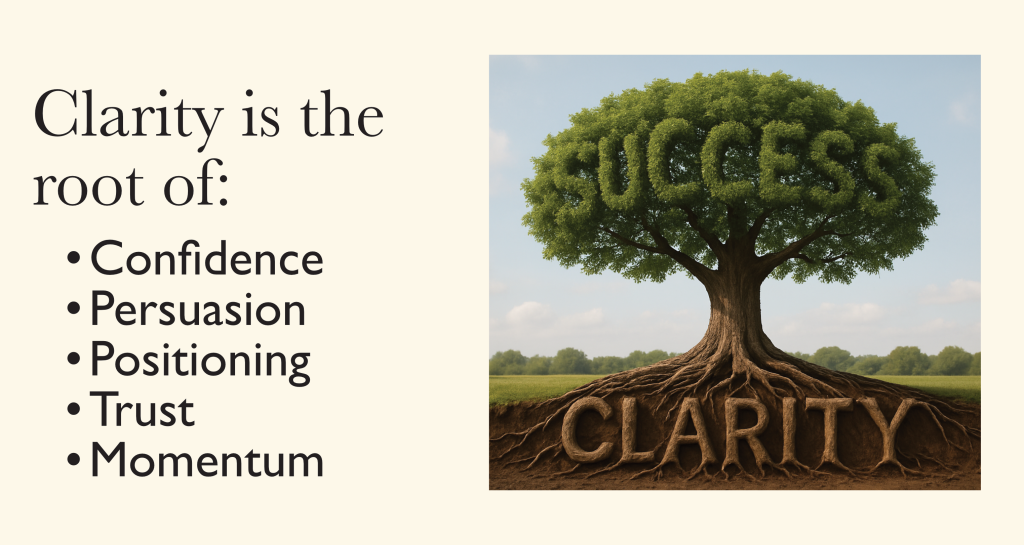 That’s how The Clarity Professor method was born. It isn’t branding. It isn’t copywriting. It’s a disciplined way of thinking — of asking the right questions, stripping away noise, and revealing the message that was always there.